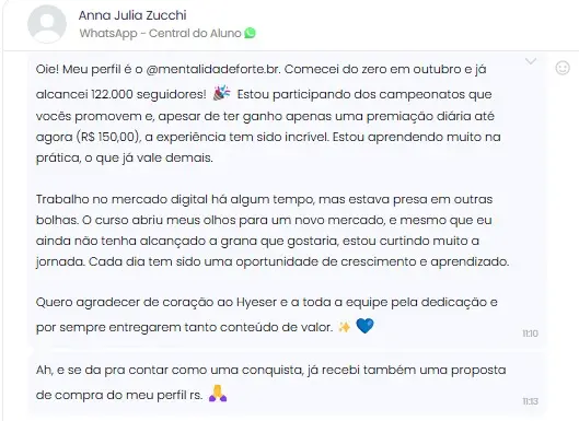 Ao longo da sua trajetória, já auxiliou mais de 20 mil alunos a transformarem perfis comuns em verdadeiras máquinas de engajamento e faturamento.