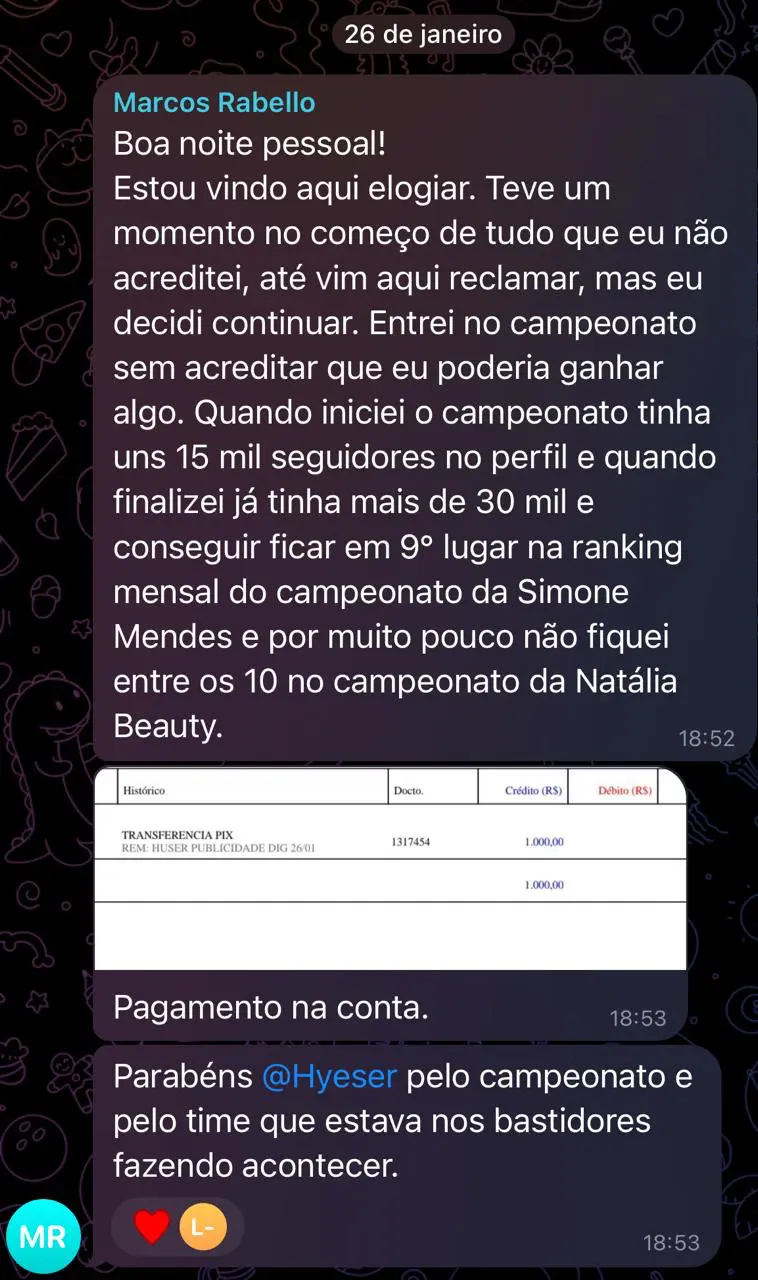 Hyeser é especialista em criação de conteúdo orgânico e monetização digital, com mais de 10 anos de experiência no mercado. Ele já acumulou 1,5 milhão de seguidores em seu próprio perfil e ajudou a construir páginas que somam mais de 22 milhões de seguidores organicamente, como @smsindelicado e @historiasemimagens.